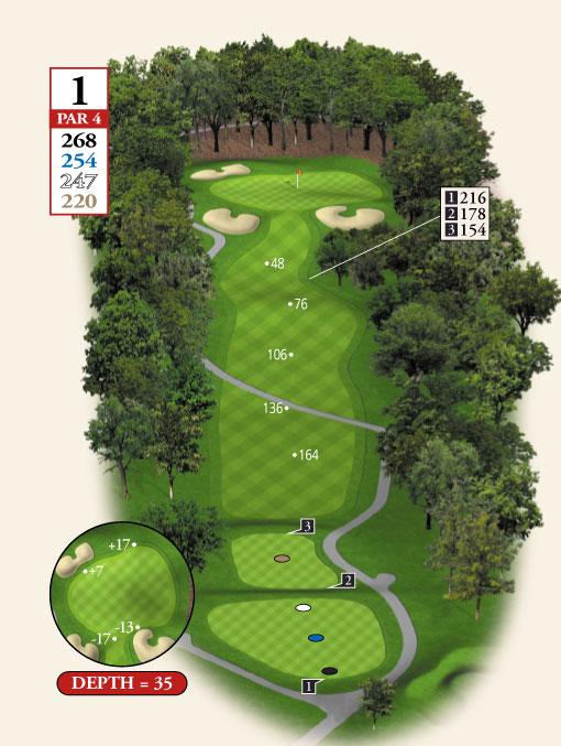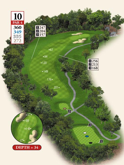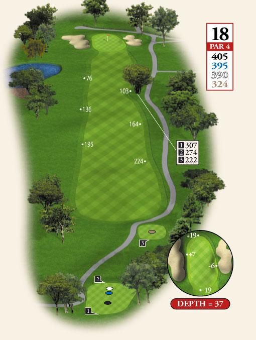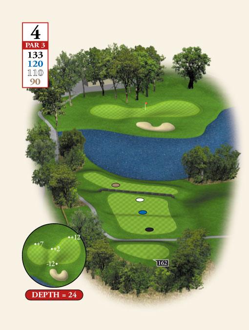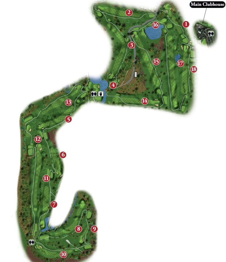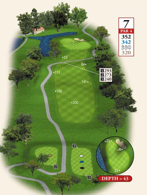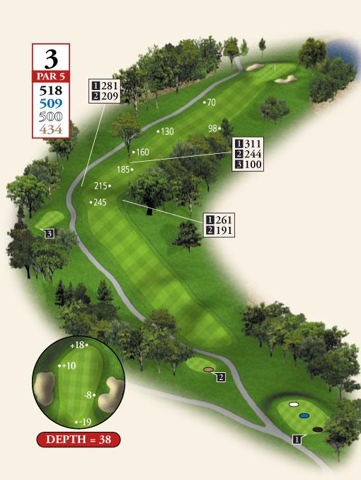 Testing, but not overpowering, best describes Course No. 3. The layout routes through gentle rolling, wooden terrain and offers a nice blend of lengths and difficulty, requiring a range of shot-making ability. The course features water on seven holes and enough sand to test the accomplished player without punishing the beginner!
